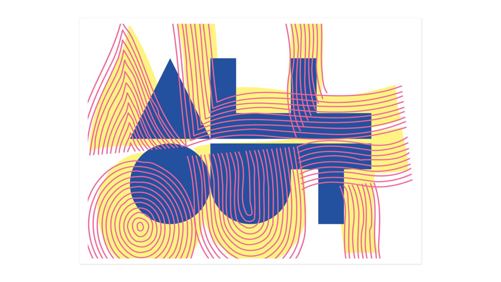 Mijn liefde voor -experimenteren met- typografie, helder kleurgebruik, lijnenspel en geometrische vormen komt tot uiting in mijn kaarten. Soms ben ik avonden, dagen op zoek naar de juiste compositie, soms teken ik ‘m in 1 keer op. Het is een proces zullen we maar zeggen.