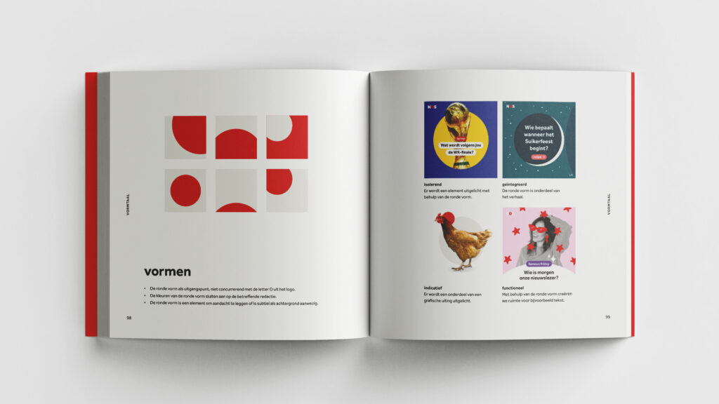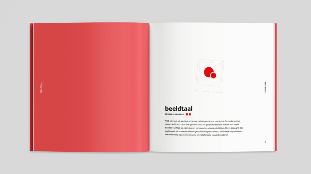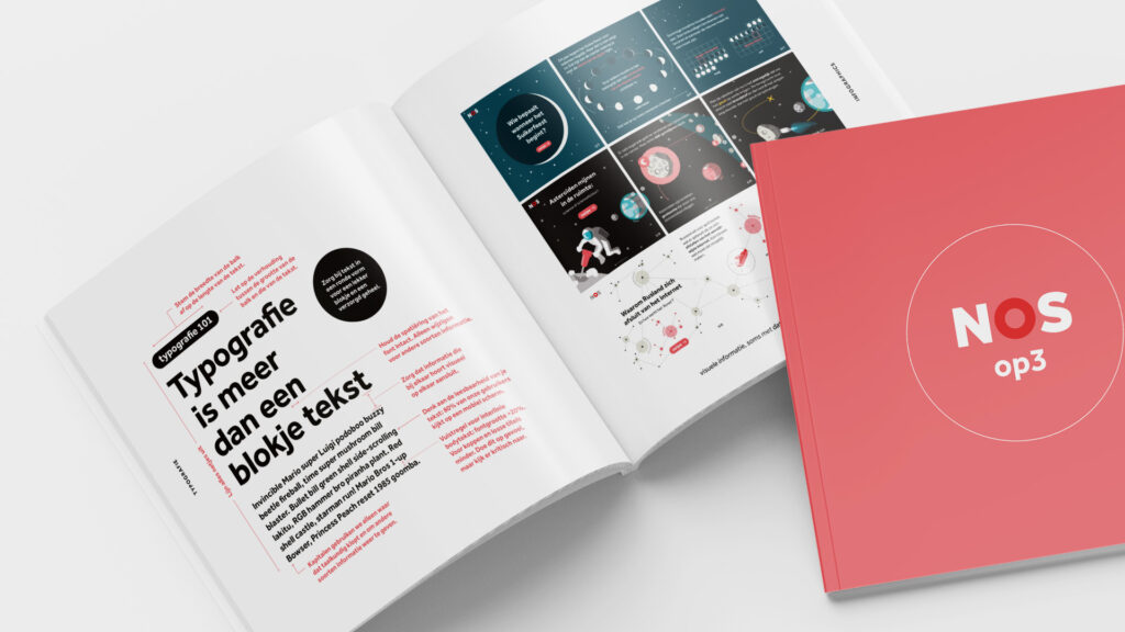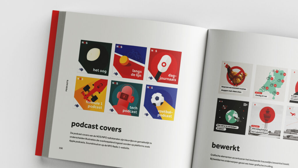 We ontwikkelden een dynamische huisstijl met een gedegen basis voor alle NOS producties. Denk dan aan het gebruik van het logo, de typografie, titels en een duidelijke vormtaal gebaseerd op ronde vormen. We wilden het vertellen van verhalen niet aan banden leggen om eenheidsworst te voorkomen. Maar er waren wel duidelijke richtlijnen nodig. Deze kwamen terecht in de NOS styleguide, of zoals wij hem noemden: de Huisstijl bijbel.